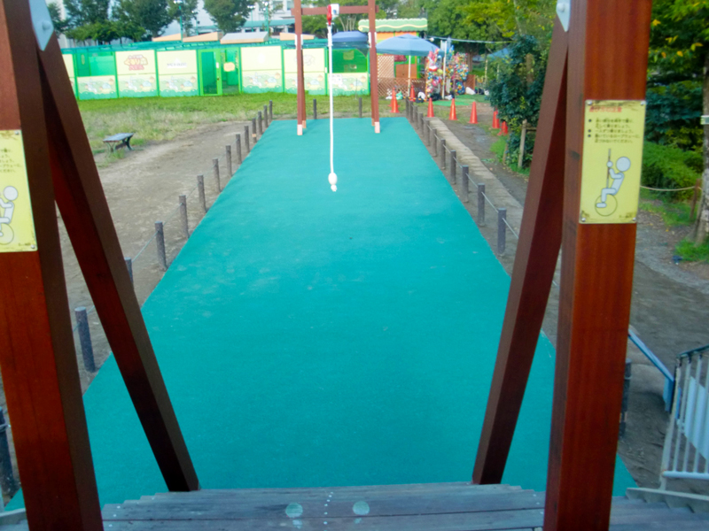 今回の遊具取替は、木材部の老朽化による取替でしたが、着工前自主点検の結果、ワイヤー金具類に摩耗が見られましたので、遊具全ての取替工事となりました。また、着地点は従来の砂に代わって、落下衝撃を緩和するゴムチップ舗装になりました。以前の構造より安全基準を満たすものが出来ました。