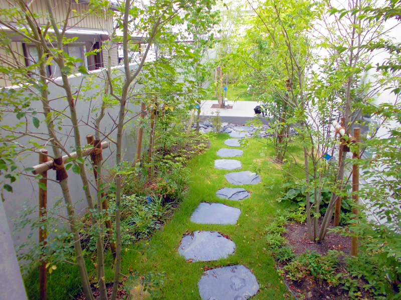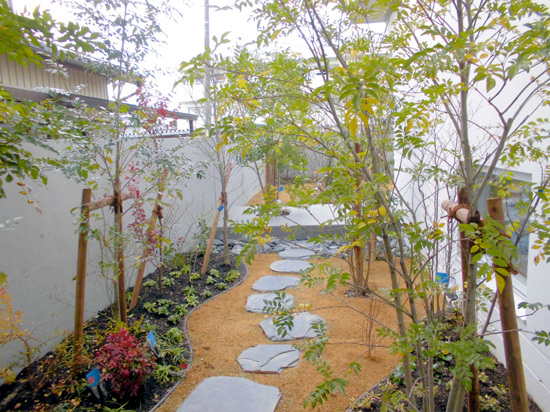 施工から完了まで、現場に何度も足を運び庭の変化を写真をとり観察しました