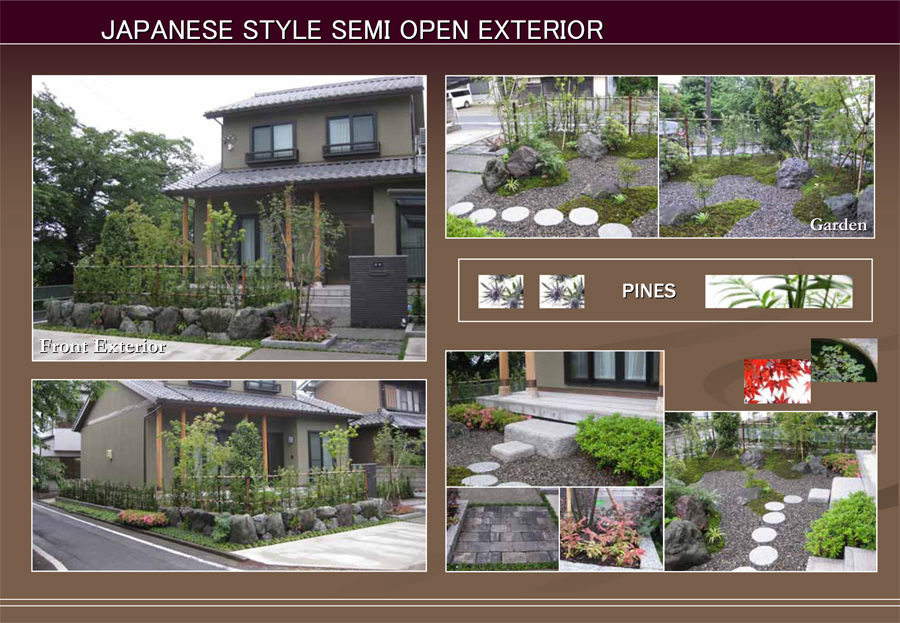 和の雰囲気を感じさせる建物にマッチしたジャパニーズスタイルのエクステリアです。落ち着いた配色と柔らかな緑がしっとりとした雰囲気を醸し出します。