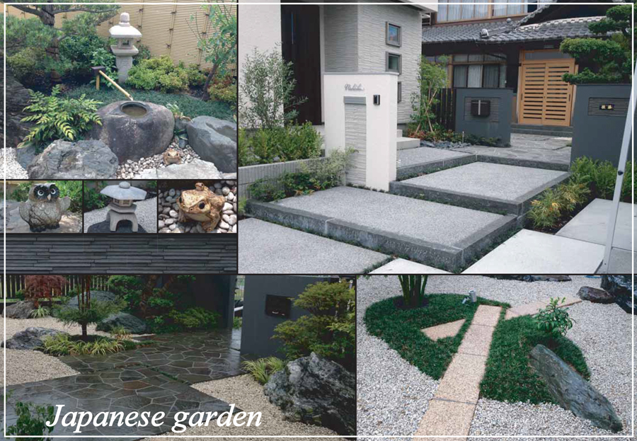 モノトーンカラーを基調としたモダンジャパニーズガーデンのエクステリアです。洗練された和の落ち着きとシャープなモダンさが調和しています。